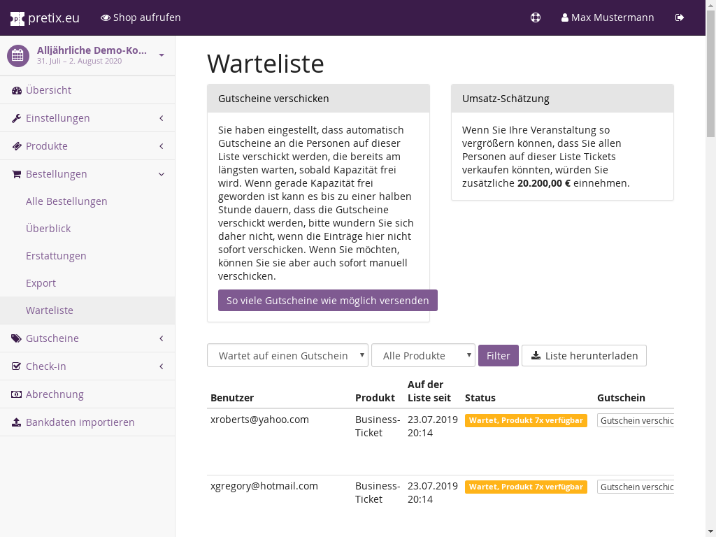 Die Funktion ist natürlich optional und kann auf Wunsch auch in einen manuellen Modus geschaltet werden, in dem Sie selbst steuern können wer wann ein Ticket von der Warteliste erhält.