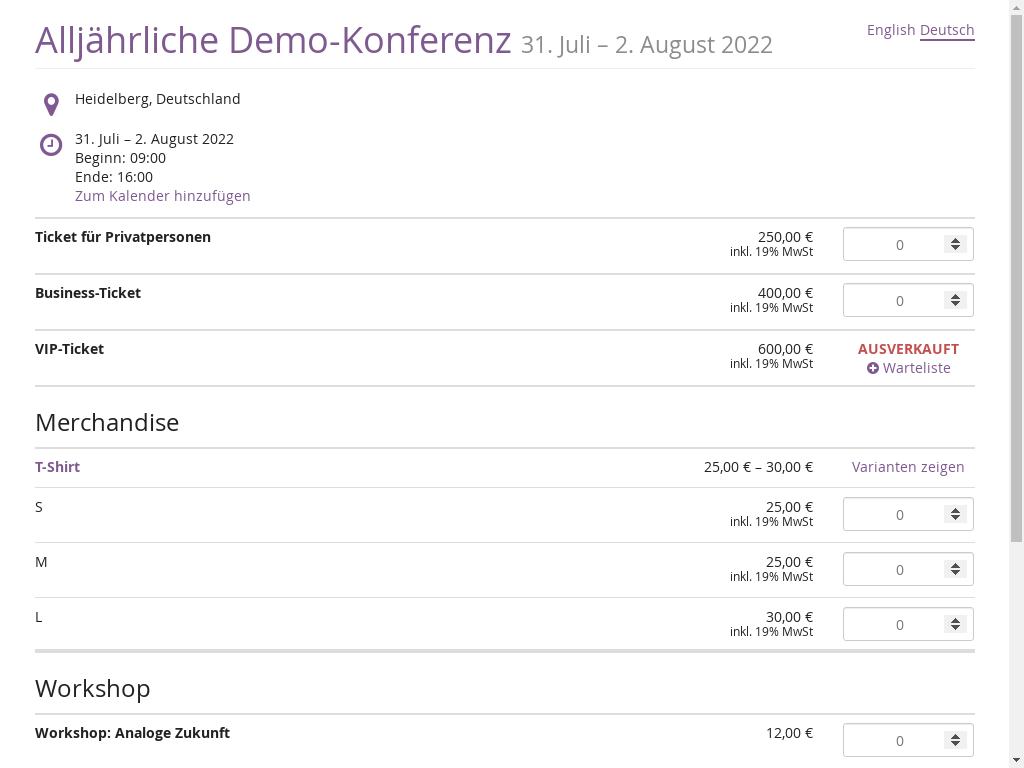 Was Sie hier sehen ist kein Screenshot, sondern ein voll funktionsfähiger Ticketshop. Probieren Sie es aus, wenn Sie möchten!