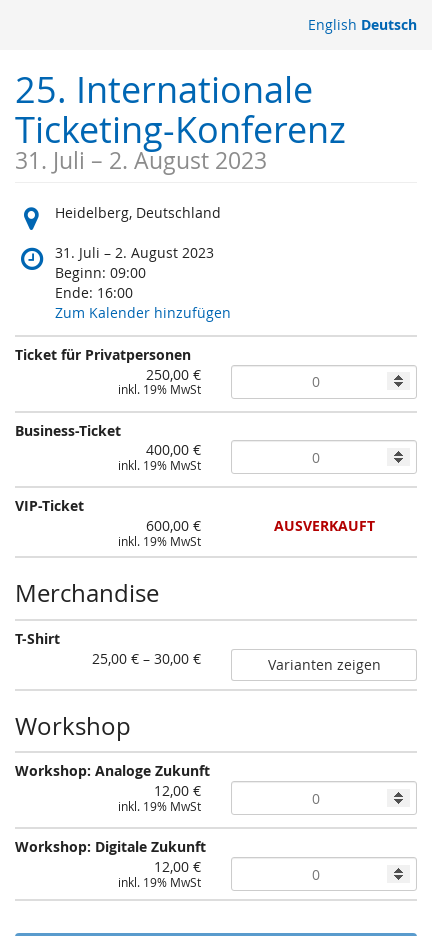 Ihr Ticketshop funktioniert überall und für alle: Als eigener Webshop oder eingebunden in Ihre Website, am großen Bildschirm oder unterwegs am Smartphone, auf einer Sprache oder in mehreren Sprachen gleichzeitig. Bei der Entwicklung achten wir auf Barrierefreiheit, datenschutzfreundliche Voreinstellungen, stabile Funktionalität und kompromisslose IT-Sicherheit.
